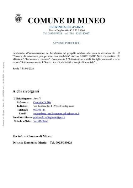 Avviso 1/2022 PNRR Next Generation EU Missione 5 ''Inclusione e coesione'linea di investimento 1.2. ''Percorsi di autonomia per persone con disabilità' - scadenza 31/01/2024