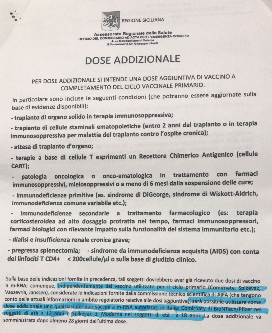 "Avviso Covid 19 - Vaccine Day PRIME DOSI - Richiamo seconda somministrazione DELL' 30 SETTEMBRE settembre 2021 - E terza dose addizionale rivolta ai soggetti fragili dopo 28gg. dall’ultima e over 6...