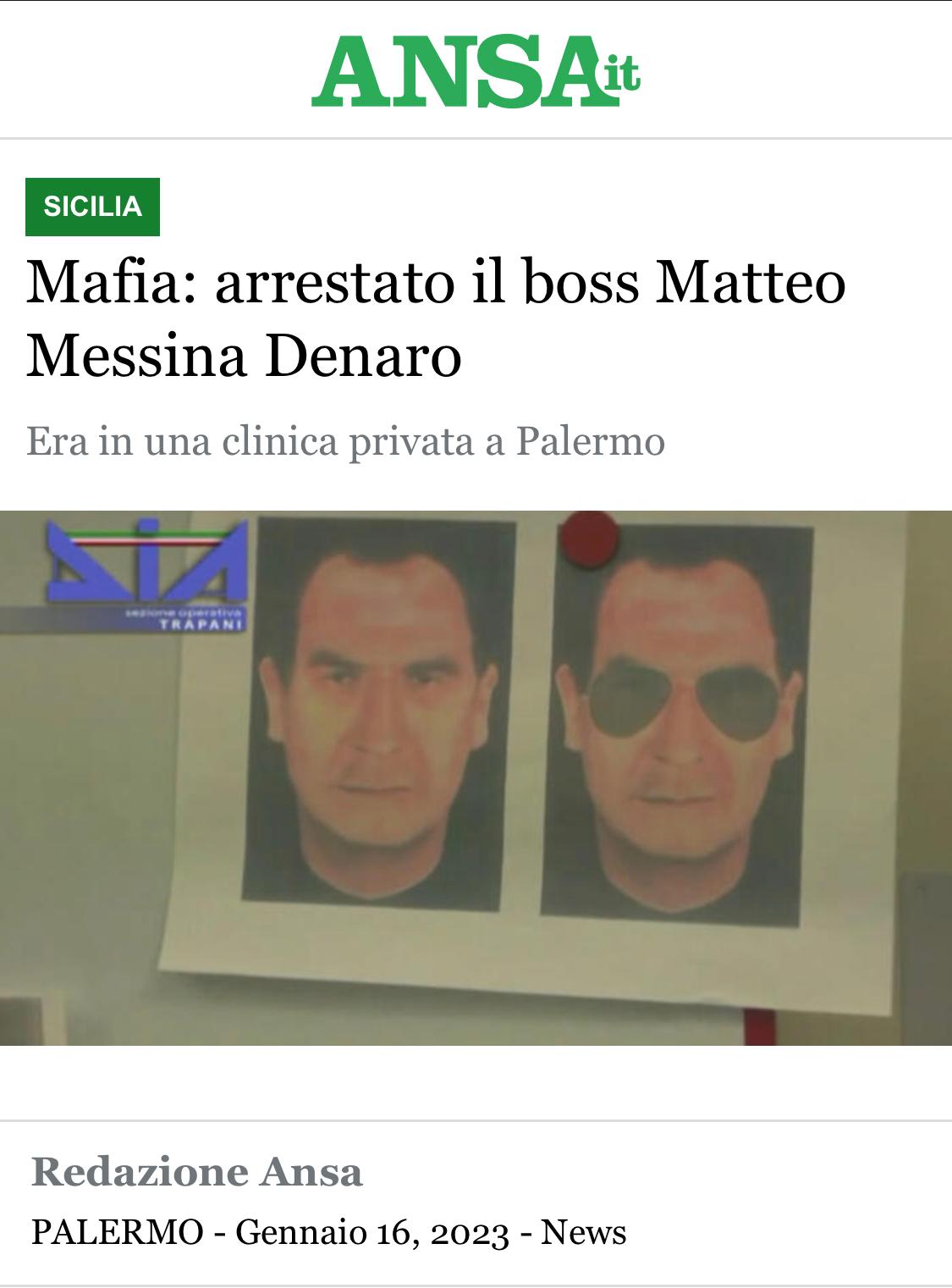 COMUNICATO STAMPA: Mafia - Arrestato il boss Matteo Messina Denaro