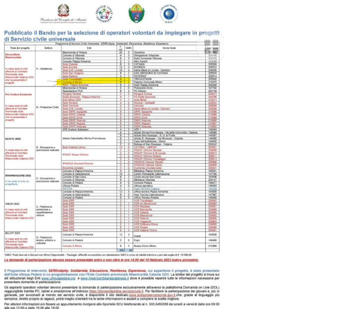 Ente capofila di riferimento del nostro Comune per reperire tutte le informazioni: Comitato Provinciale delle Misericordie di Catania - O.d.V. https://www.misericordieareacatanese.it
