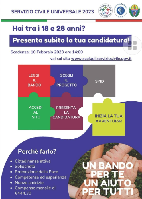 Gli aspiranti operatori volontari devono presentare la domanda di partecipazione esclusivamente attraverso la piattaforma Domanda on Line (DOL) raggiungibile tramite PC, tablet e smartphone all’indirizzo https://domandaonline.serviziocivile.it. Le domande di partecipazione devono essere presentate entro e non oltre le ore 14.00 del 10 febbraio 2023. Nella sezione Servizio Civile/Bandi e Avvisi di Servizio Civile/Bandi di selezione Volontari del sito www.politichegiovanili.gov.it ci sono tutte le informazioni e la possibilità di leggere e scaricare il bando. Per facilitare la partecipazione dei giovani e, più in generale, per avvicinarli al mondo del servizio civile, è disponibile il sito dedicato www.scelgoilserviziocivile.gov.it che, grazie al linguaggio più semplice, diretto proprio ai ragazzi, potrà meglio orientarli tra le tante informazioni e aiutarli a compiere la scelta migliore.