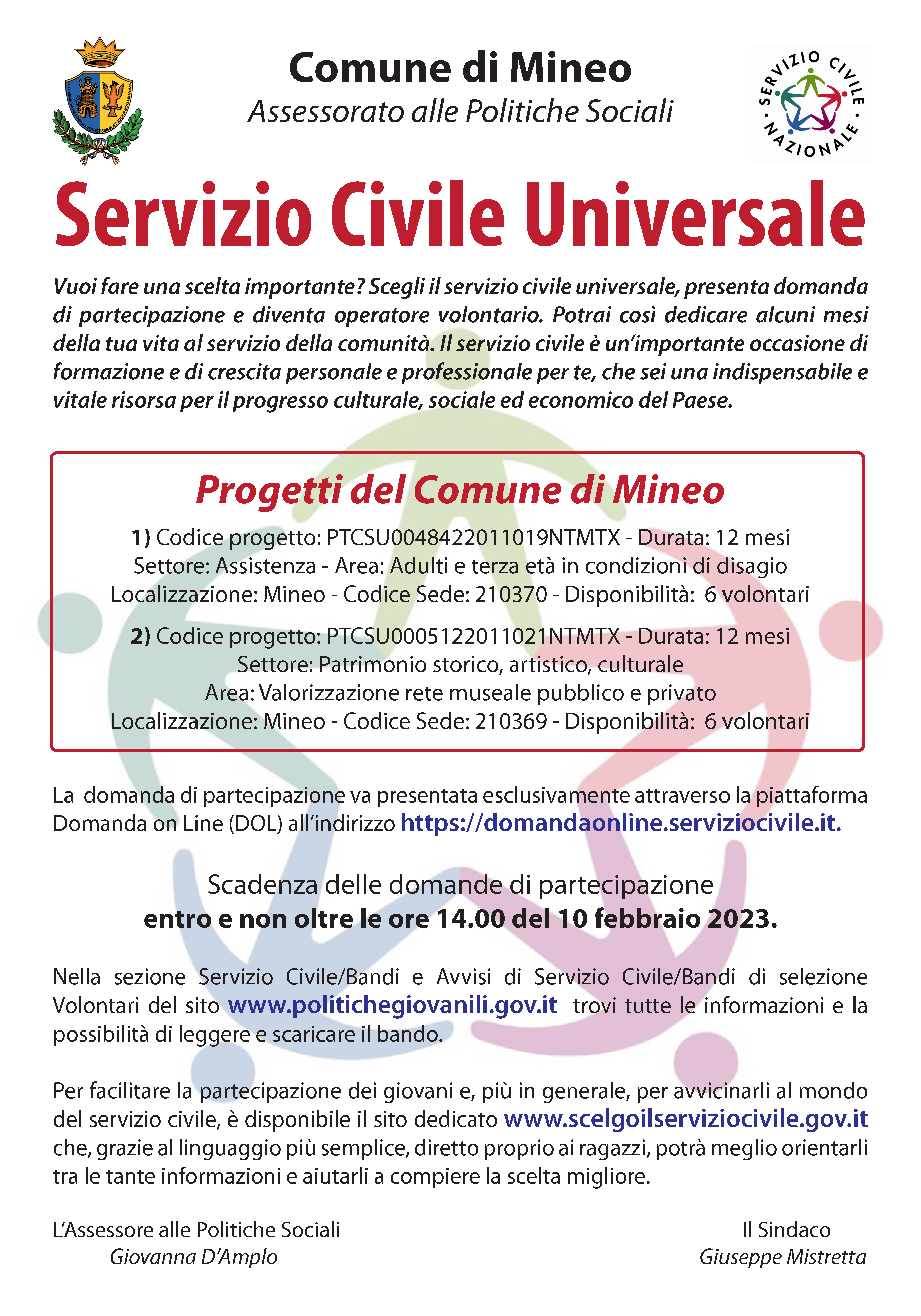 Pubblicato il Bando per la selezione di 71.550 operatori volontari da impiegare in progetti di Servizio civile universale - Scadenza 10 febbraio 2023 Ore 14:00
