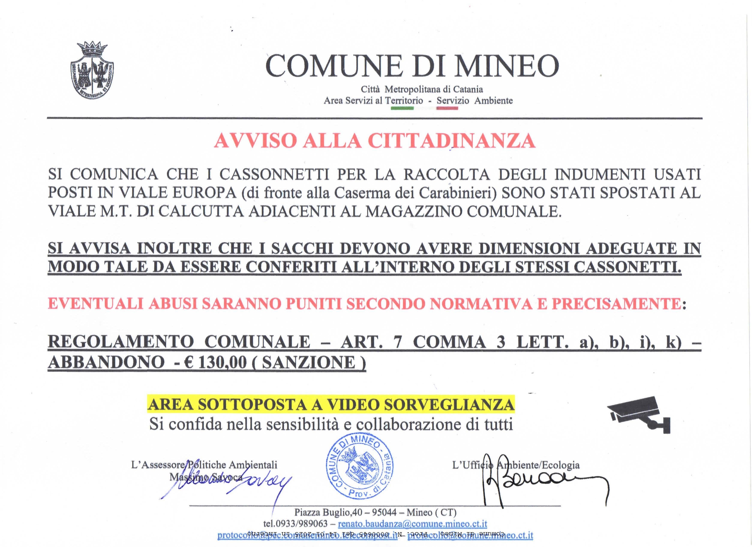 Documenti File allegati Prot Int 0000645 del 14 01 2025 Documento Avviso spostamento cassonetti abiti usati (File pdf 599,30 kB)