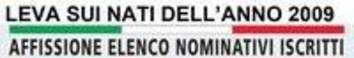 che l’elenco nominativo dei giovani compresi nella lista di leva dei nati nell’anno 2009, trovasi affisso da oggi e sino a tutto il 15 c.m. all'albo pretorio e nel sito web istituzionale del comune.